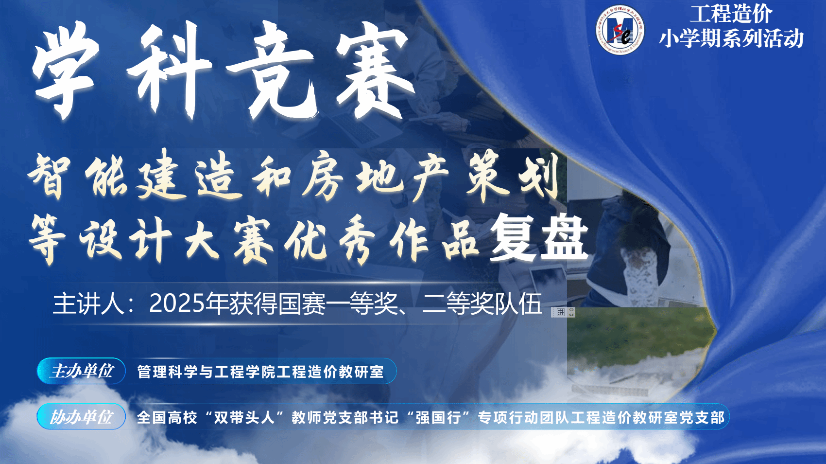 根据管理科学与工程学院“小学期”实践活动的安排,工程造价教研室根据2023级、2024级工程造价专业本科生的专业知识掌握情况和社会需求状况,精心组织了“学科竞赛-智能建造和房地产策划等设计大赛优秀作品复盘”小学期实践活动。2026年1月16日下午,工程造价教研室党支部书记、主任白鹏锐及专业老师数人和2023级、2024级工程造价专业本科生近250余人参加活动。